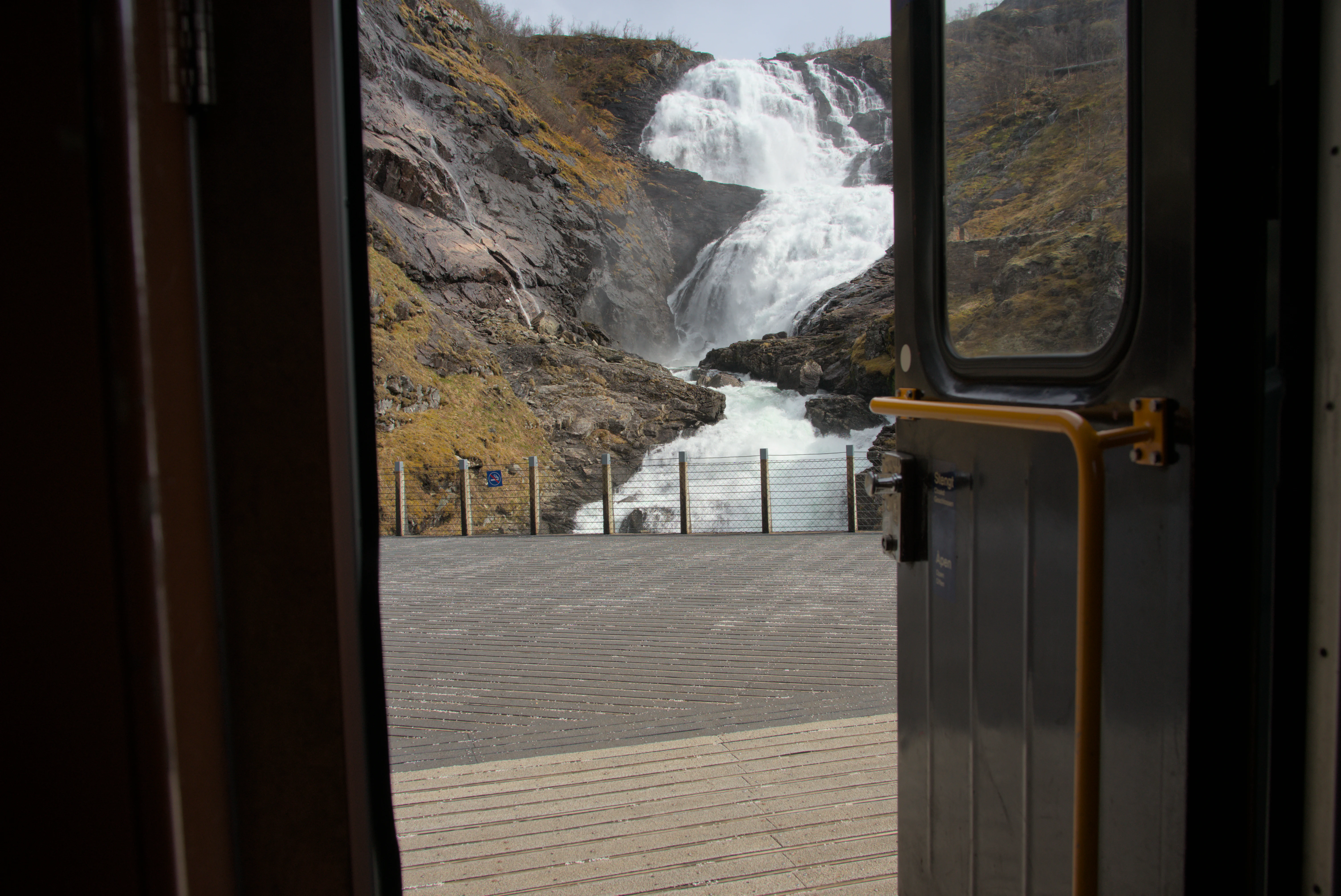 Kjosfossen Waterfall from the Flåm Railway